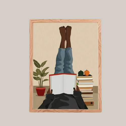 African American boho wall art featuring a black woman reading, designed with rich details and vibrant colors. Printed on high-density canvas with fade-resistant inks and stretched over a durable wooden frame. Ready to hang with pre-mounted hooks for effortless installation. Available in 12"x16" and 16"x24", this framed canvas print enhances bedrooms, living rooms, kitchens, or offices with cultural charm and warmth. A thoughtful gift for Valentine’s Day, Christmas, housewarming, or special occasions.